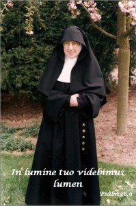 Na een geduldig gedragen lang ziekbed, geheel overgegeven aan Gods liefste Wil en gesterkt door de HH. Sacramenten van de Kerk heeft zij haar Paasoffer volbracht en is zij in vrede naar haar verrezen Heer gegaan op 28 augustus 2013, het feest van haar patroonheilige Sint Augustinus.